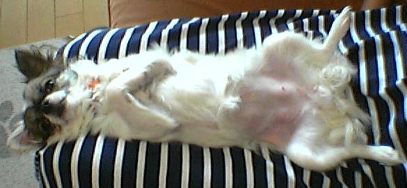 ひっくり返ったペコちゃんです。 最近はよくこのポーズをします。 ピンクのお腹がキュートです。